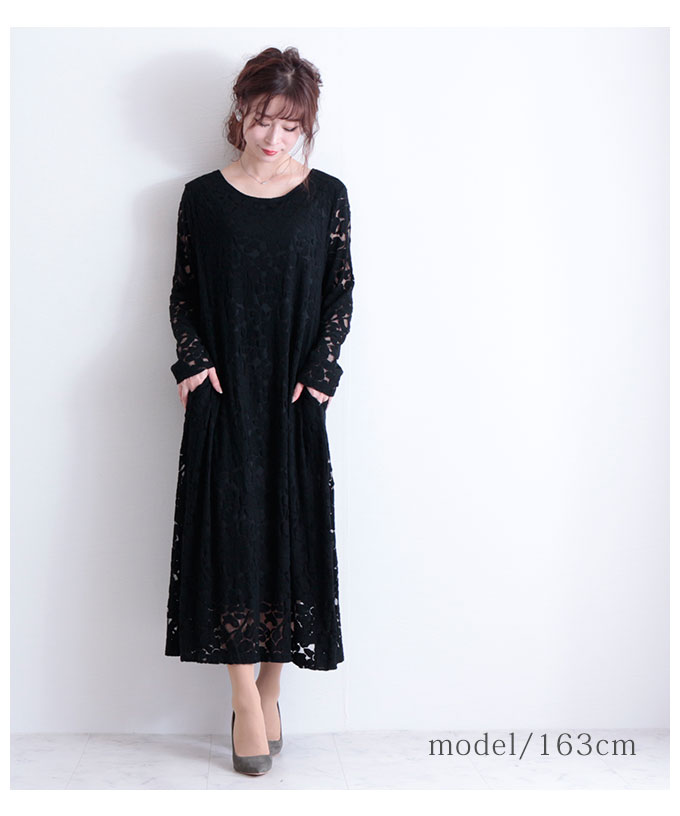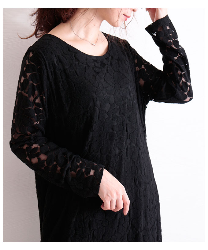 花レース透ける長袖ロングワンピース レディース ファッション ワンピース ブラック 長袖 ロング丈 春 夏 秋 花 レース 透け感 エレガント 大人 30代 40代 50代 60代 サワアラモード sawaalamode otona 大人 kawaii 可愛い 洋服 かわいい服 【9月2日8時販売新作】