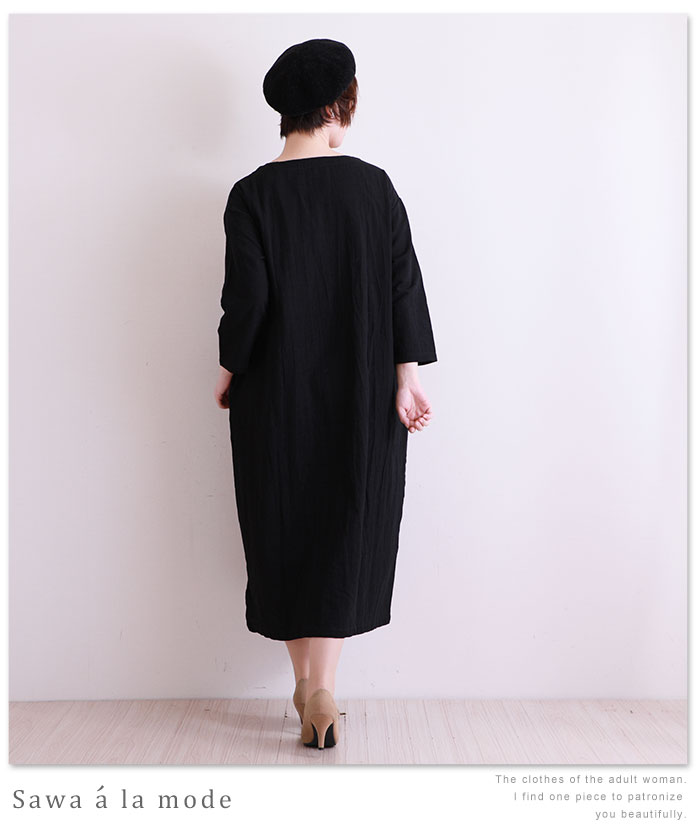 レディースファッション ワンピース 長袖 ミモレ丈 ミディアム丈 ブラック 黒 ロングワンピース 連なるボタンが可愛い大人ワンピース ボタン シンプル 長袖 春 夏 秋 冬 オフィスカジュアル 体系カバー 同窓会 およばれ ナチュラル モノトーン サワアラモード otona kawaii
