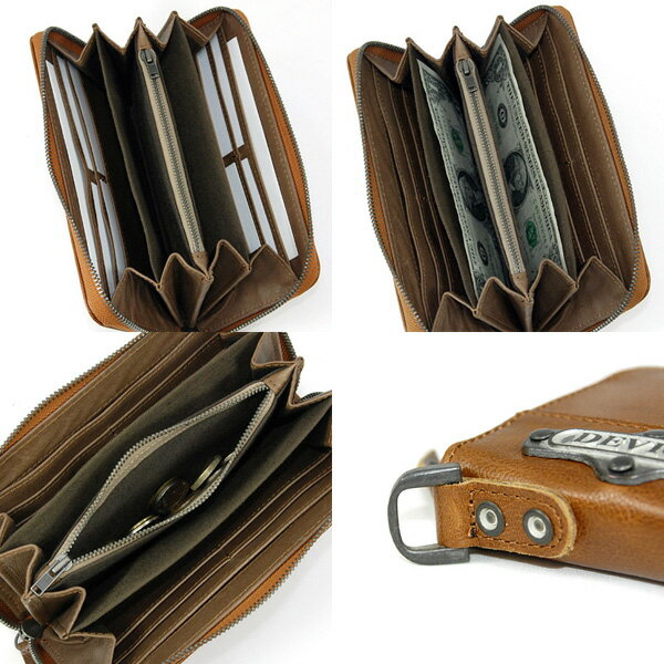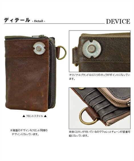 DEVICE gear ラウンドファスナーレザーロングウォレット/dpl40078/長財布 メンズ ラウンドファスナー ヴィンテージ ウォレットチェーン 小銭入れ 革